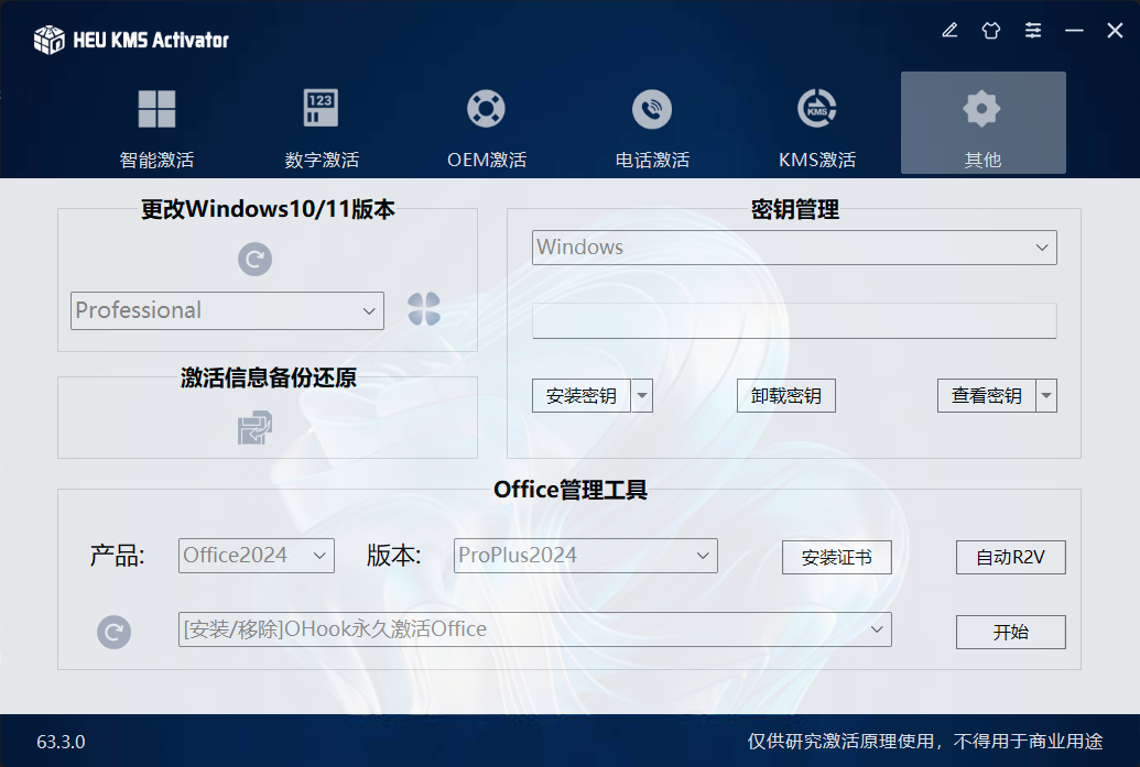 推荐HEU_KMS_Activator(因为这个确实在众激活程序中比较受欢迎,且选择丰富,功能多)